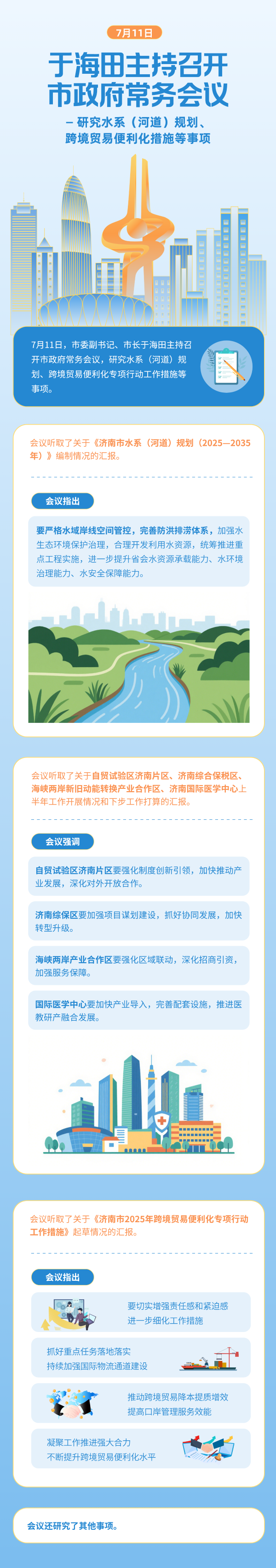 7月11日,市委副书记、市长于海田主持召开市政府常务会议,研究水系(河道)规划、跨境贸易便利化专项行动工作措施等事项。