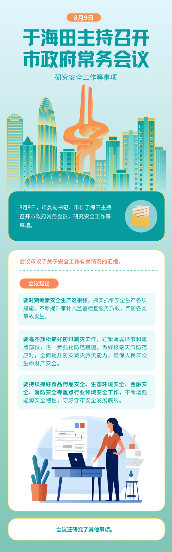8月9日,市委副书记、市长于海田主持召开市政府常务会议,研究安全工作等事项。