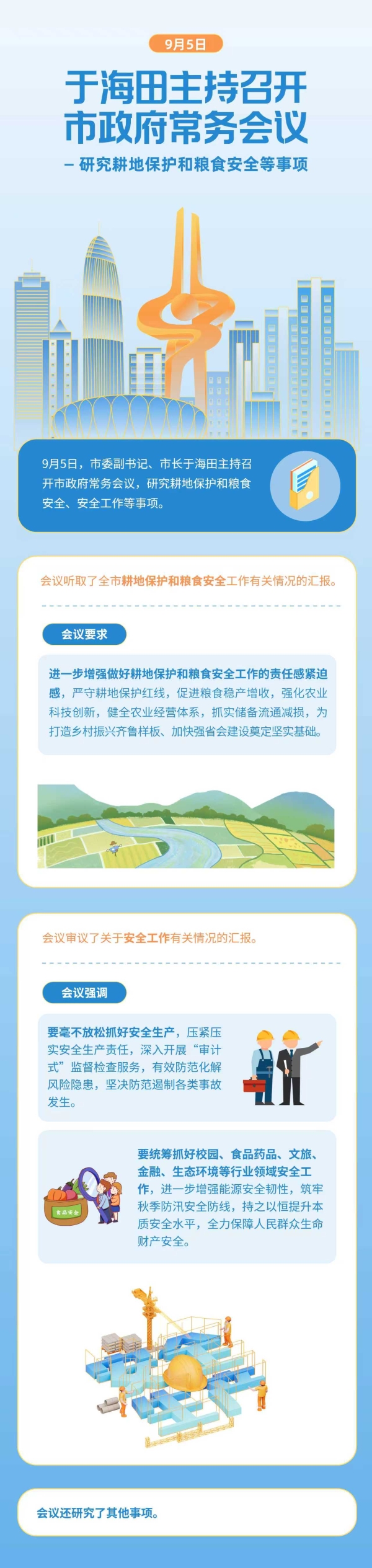 9月5日,市委副书记、市长于海田主持召开市政府常务会议,研究耕地保护和粮食安全、安全工作等事项。