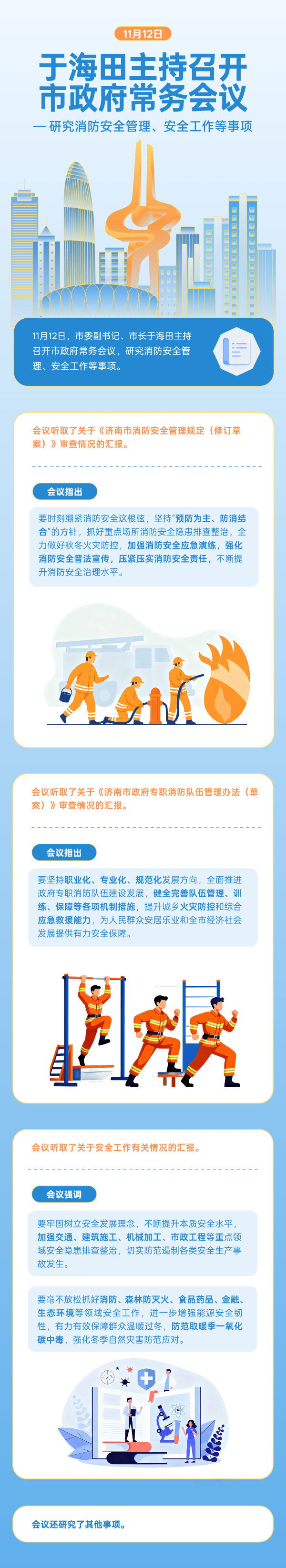 11月12日,市委副书记、市长于海田主持召开市政府常务会议,研究消防安全管理、安全工作等事项。