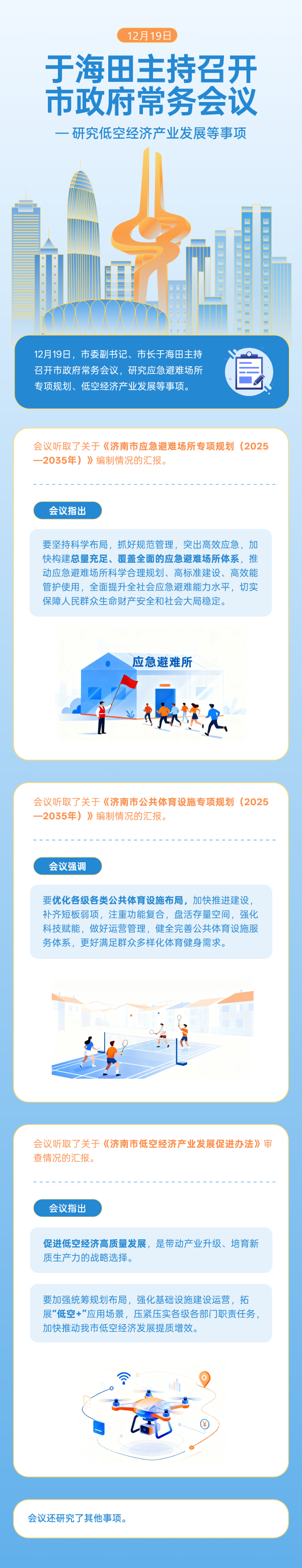 12月19日,市委副书记、市长于海田主持召开市政府常务会议,研究应急避难场所专项规划、低空经济产业发展等事项。