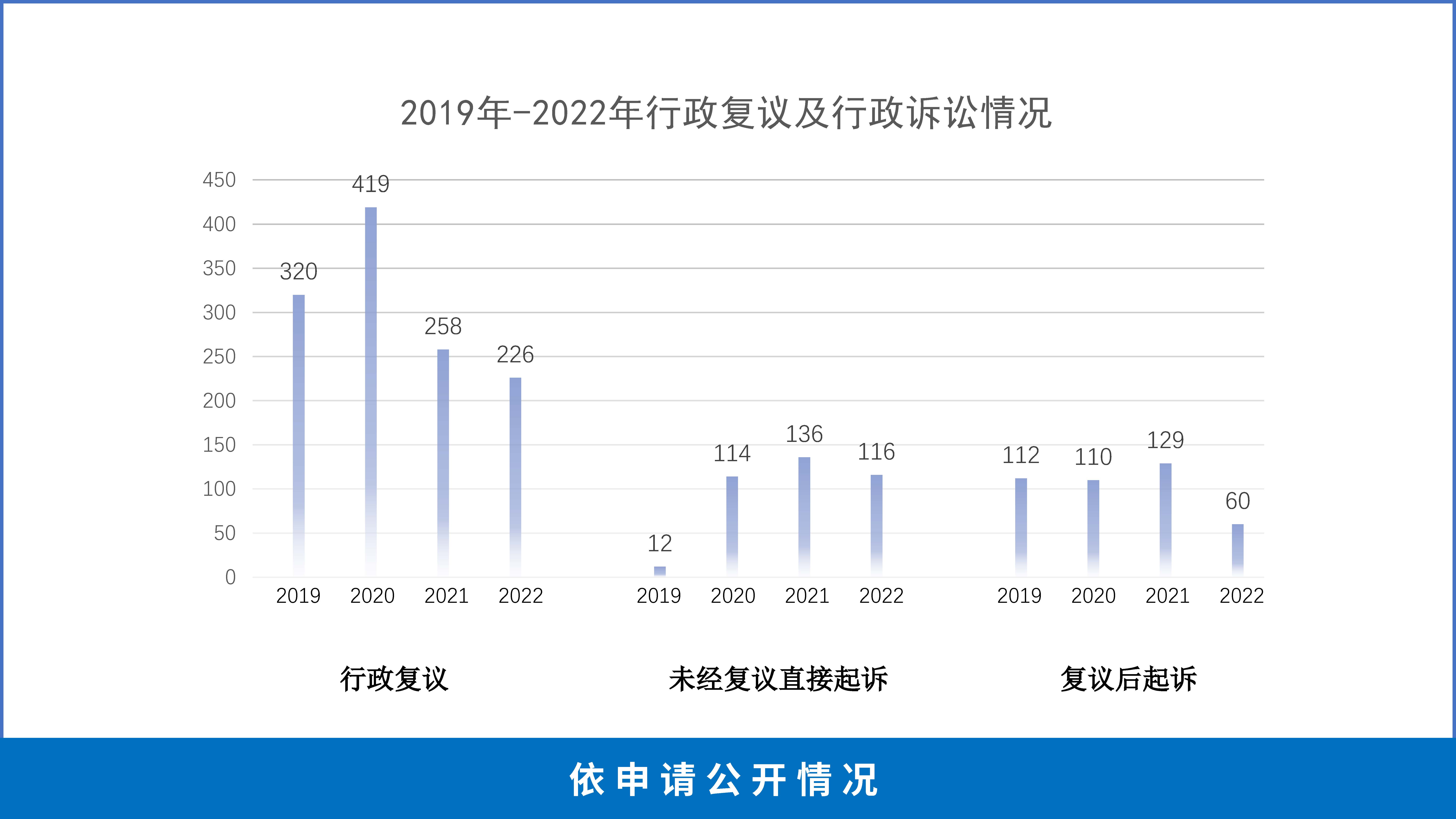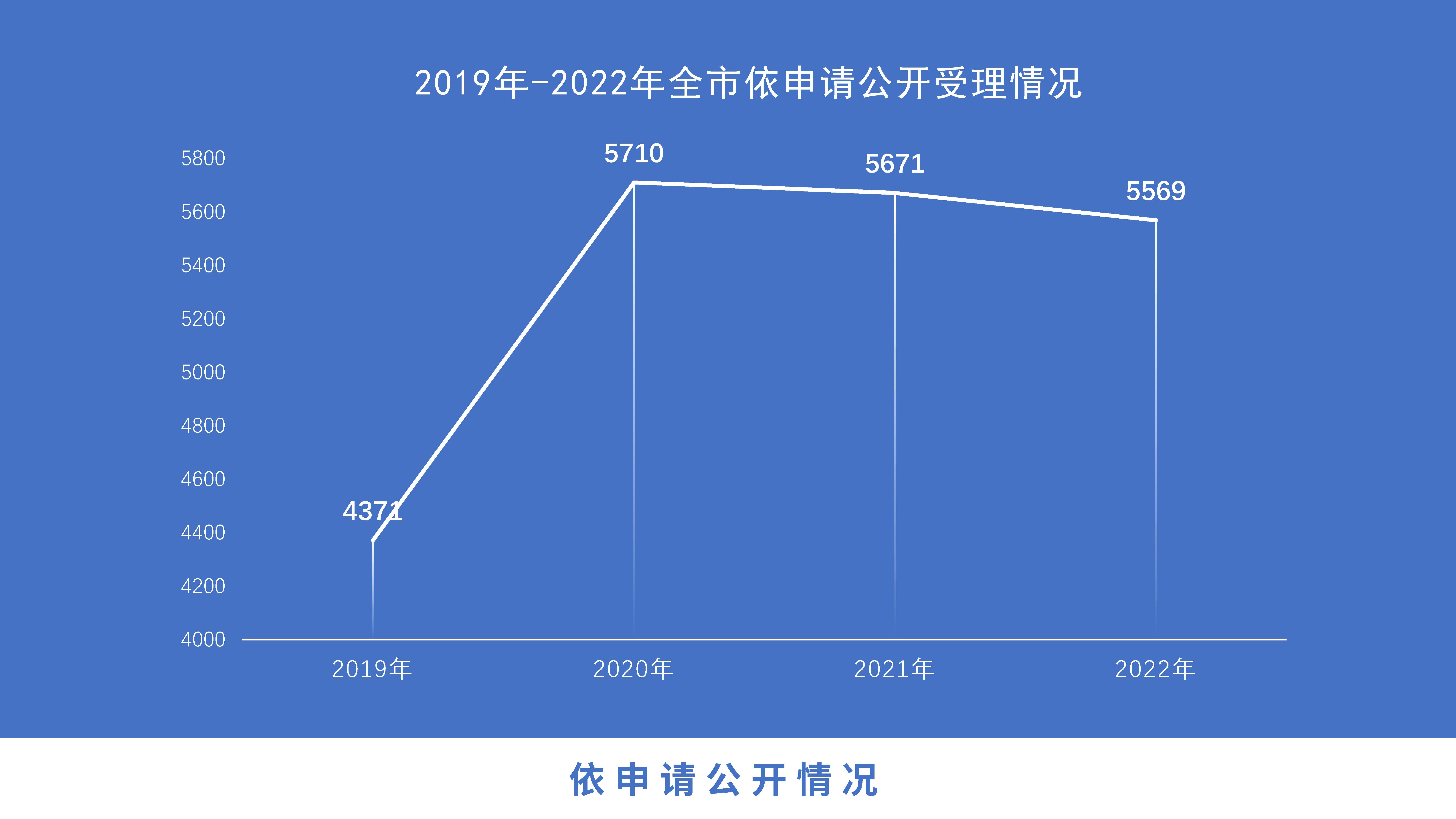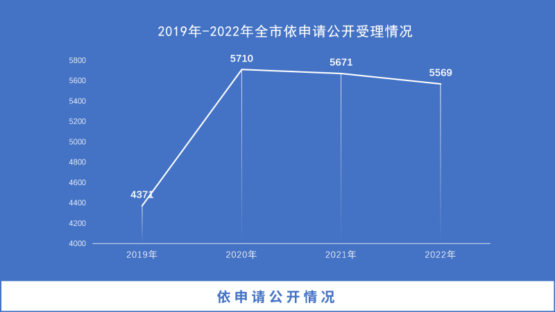 (二)依申请公开情况。积极提高全市政府信息公开申请办理效率,建立健全登记、审核、办理、答复、归档等工作制度,依法保障公民申请获取政府信息的权利。全年办理政府信息公开依申请5569件,同比下降1.8%,呈缓慢下降态势。其中,因政府信息公开产生行政复议226件,同比下降12.4%;未经复议直接起诉116件,同比下降14.7%;复议后起诉60件,同比下降53.5%。
