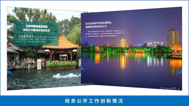 (四)本行政机关年度政务公开工作创新情况。围绕基层政务公开标准化、规范化、特色化建设,建立政务公开发布标准,梳理政务公开流程规范,打造出多点开花式的特色试点,聚焦标准化清单落实,以基层政务公开工作中的难点问题为切入点,在助推政府治理体系和治理能力现代化建设方面进行了有益探索,国务院办公厅《政务公开工作交流》连续两年刊发济南市基层政务公开工作经验。