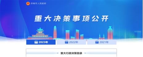 二是规范行政决策,制定印发市政府规章《济南市重大行政决策程序若干规定》,以规范为准则加强决策公开,推动行政决策法治化;在市政府门户网站每年定期公开重大决策事项目录,涉及群众切身利益、需要社会广泛知晓的重要改革方案、重大政策措施等,除依法应当保密的外,在决策前均向社会公开,并及时反馈意见采纳情况,充分保障人民群众知情权、参与权、表达权和监督权,2023年开展意见征集49期;探索建立常态化政策评价机制,通过政府开放日、征集调查、专题座谈、网络问政等方式开展实施效果评价,全面掌握政策落地情况,实时公开政策评价结果,2023年开展政策评价并公开结果信息35次。