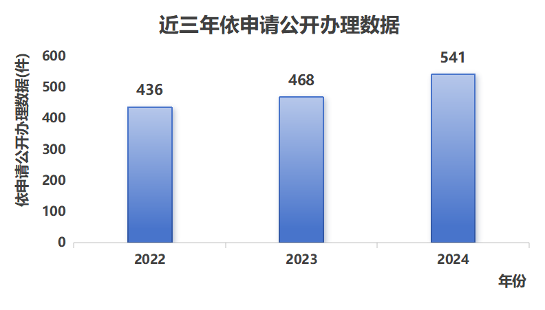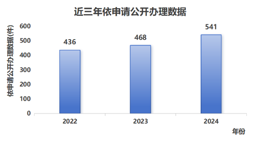 强化服务理念,主动与申请人沟通,做好便民解答、指引和服务,推动申请人合理诉求的实质性解决。开发建设“全市政府信息依申请公开智能化办理系统”,实现对全市政府信息依申请公开件接收、登记、补正、办理、协查、审签、答复、延期、归档等全流程监管和全闭环管理,系统具备大数据分析、热力图展示、案例库共享等功能。全年共受理公众向市政府(市政府办公厅)提交的政府信息公开申请543件(含上年度结转6件),申请内容主要集中在城市更新、征收拆迁、土地出让、城乡规划等方面,依法办结541件,结转下年度办理2件。