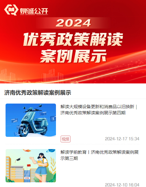 2024年,通过政府网站主动公开机构职能、政策文件、常务会议等在内的信息428条;严格落实政策解读材料与政策文件同步起草、同步审签、同步发布“三同步”原则,印发《关于进一步加强政务公开重要政策解读工作的通知》和工作指引,全年对市政府和市政府办公厅印发的61个政策文件制作发布视频、动漫等多形式解读材料188个,切实增强政策解读的传播力和影响力;组织开展2024年度全市优秀政策解读案例评选活动。