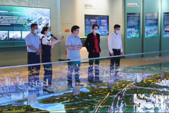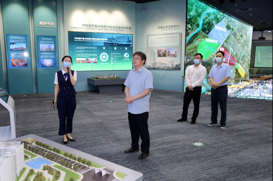 5月26日下午,中国科学技术信息研究所调研室主任、研究员杨朝峰,科技政策研究室副主任、研究员张志娟一行来到济南国际医学中心,实地调研园区发展建设、科技创新情况,医学中心管委会副主任国亮陪同调研。