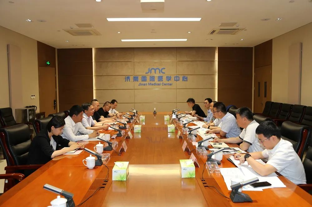 孙立东一行首先参观了济南国际医学中心综合展厅,从园区规划、平台打造、配套建设等多个方面对医学中心发展建设情况有了整体了解。座谈会上,双方围绕园区重点项目建设、医疗资源聚集、高端人才引进、科研成果转化等方面进行了深入交流。