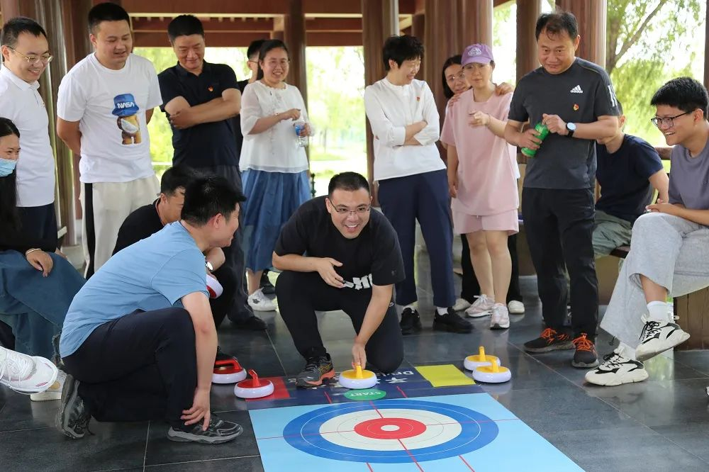 为进一步培养大家的团队意识,增强凝聚力和向心力,本次团建还设置了多个集体活动。虽然天气炎热,全体干部职工齐心协力、完美配合,互帮互助、迎难而上,完成了非洲鼓、风火轮、旱地冰壶、投壶等团体项目,进一步增强了团队积极沟通、相互信任的合作意识,更振奋了青年员工在工作中不断挑战自我、敢于拼搏的精神。