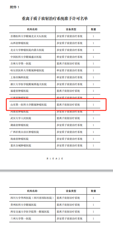 2月8日,国家卫生健康委发布《关于2023年甲类大型医用设备配置许可结果的通告》,公布了重离子放射治疗系统准予许可名单,山东省肿瘤医院榜上有名,成为全国唯一一家同时拥有质子和重离子两套治疗系统的医院。这意味着,作为济南国际医学中心的“一号工程”“引爆项目”,山东省质子中心朝着打造国际顶级全链条肿瘤放疗技术体系的路上又向前迈进一步!