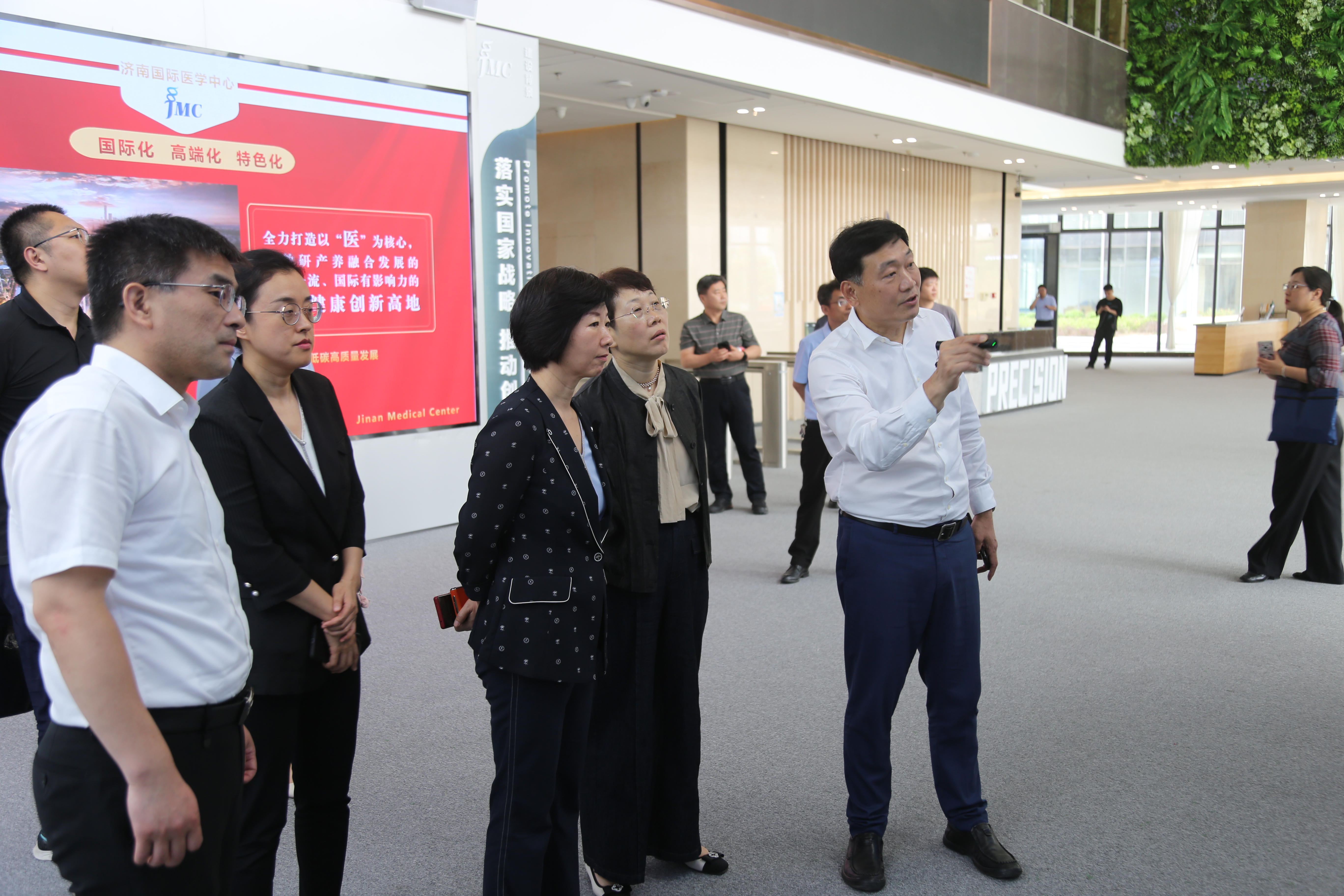 6月5日下午,济南市纪委副书记、市监委副主任王欢带队到济南国际医学中心调研。医学中心党工委副书记、管委会主任张济陪同调研。