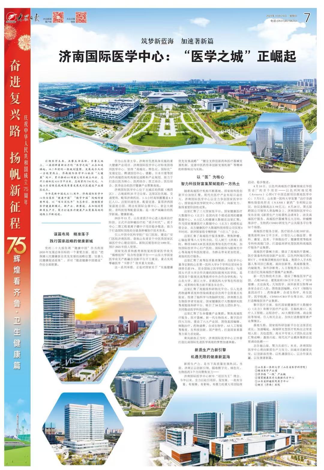今年是新中国成立75周年,济南国际医学中心作为落实“健康中国”“数字中国”战略的重要布局,以“项目深化年”为总牵引,持续探索医学健康新模式、新产业、新赛道,在加快培育新质生产力、聚力打造医疗健康产业聚集高地的道路上不断迈进。