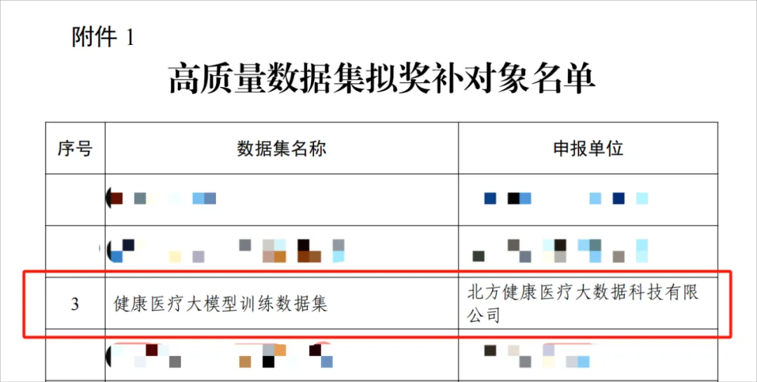 日前,山东省大数据局公布《2025年“数据要素×”创新应用项目奖补对象名单》,北方健康打造的“健康医疗大模型训练数据集”成功入选高质量数据集奖补名单,标志着公司在以高质量数据赋能产业发展方面取得新进展。