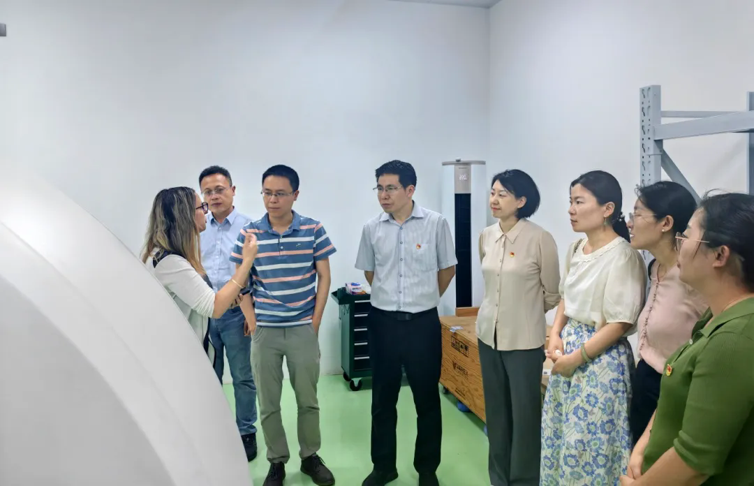 山东省食品药品审评查验中心副主任夏文龙一行,在医学中心党工委委员、副主任燕晓静陪同下,先后走进医学中心综合展厅,以及山东省质子中心、医疗硅谷等重点项目,走访了阿瑞尼塔和凡知医学两家公司,现场与企业负责人进行业务交流,解答了企业产品注册审评阶段的问题,收集了注册申报的产品资料。