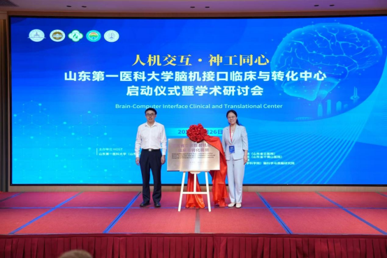 会议以“人机交互、神工同心”为主题,汇聚了来自全国脑科学、人工智能、临床医学、成果转化各领域的近百位专家,旨在推动脑机接口技术从实验室到临床应用转化,在山东打造高水平脑机接口创新与产业高地。 陆林在致辞中详细介绍了脑机接口技术在国内外的发展形势。 他讲到,脑机接口技术,作为近年来备受瞩目的前沿科技,被视为未来医疗领域的重要突破方向,这一技术在医学领域的突破应用,为难治性脑部和神经受损疾病患者带来了新希望。目前,脑机接口已成为全球科技竞争的高地,各国都在积极推动脑机接口从实验室走向临床医学应用,期望率先抢占这一新兴领域的制高点,掌握未来医疗健康产业的主动权。 他指出,山东作为人口大省,神经精神系统疾病患者基数庞大,脑瘫、帕金森、癫痫等难治性脑部和神经受损疾病给患者家庭与社会带来极重的医疗负担;且山东是工业大省,医疗器械制造、生物材料研发等新兴领域虽存在既有优势,但缺乏串联脑机接口“科研-产业-医疗”一体化发展的链条载体,缺乏有效吸引汇聚省内外更多科研机构、医疗机构、企业跨界融合的平台。山东第一医科大学成立脑机接口临床与转化中心,并在附属省立医院(山东省立医院)、第一附属医院(山东省千佛山医院)、第二附属医院同步建设脑机接口临床研究与转化病房,旨在充分发挥校(院)科教融合、教研医协同创新优势,尽快在山东打造脑机接口临床转化平台,吸引汇聚省内外更多科研机构、医疗机构、企业跨界融合,构建“产学研用”协同创新共同体,加速我省脑机接口技术从实验室到临床应用转化,推动前沿医疗技术在山东落地。 下一步,山东第一医科大学成立脑机接口临床与转化中心将致力于打造顶尖团队,坚持临床导向,勇攀医学高峰,聚焦抑郁症、强迫症、脊髓损伤等重大神经精神疾病的临床需求,提高转化能力,推动产学研协同,全面提升山东高端医疗技术和临床服务水平,为山东建设健康强省、科技强省注入澎湃动力,在全球脑机接口临床转化浪潮中,贡献山东智慧、展现山东担当。 吴向东在致辞中讲到,此次脑机接口临床与转化中心以及三个直属附属医疗机构“脑机接口临床研究与转化病房”的成立,标志着校(院)在脑机接口技术从实验室迈向临床应用的道路上,迈出了坚实而关键的一步。附属省立医院(山东省立医院)作为大学的重要临床支撑,将以临床研究与转化病房为核心阵地,整合医院神经外科、神经内科、康复科、影像科等多学科资源,加快脑机接口技术的临床转化进程,推动更多创新成果落地生根,造福广大患者。 “山东第一医科大学脑机接口与临床转化中心”启动 “附属省立医院脑机接口临床研究与转化病房”启动 “第一附属医院脑机接口临床研究与转化病房”启动