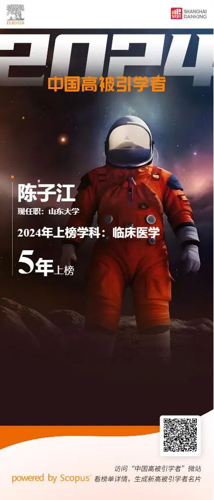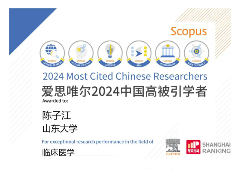 陈子江院士连续5年入选爱思唯尔“中国高被引学者”榜单