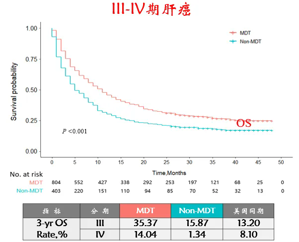 III期肝癌患者MDT组3年总体生存率显著高于美国同期