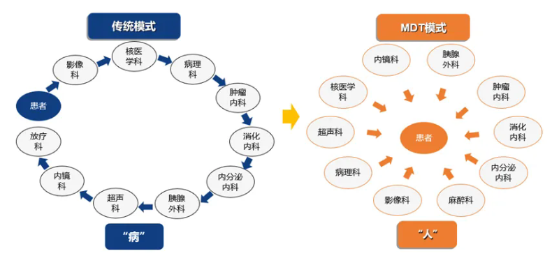 与传统模式相比,MDT模式打破了学科壁垒,整合医学资源,杜绝了“头痛医头、脚痛医脚”乱象,实现了“专家围着病人转”,能够有效避免漏诊误诊、过度诊疗,帮助患者实现最大化获益。