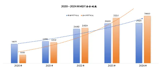 医院坚持守正创新,持续深化MDT内涵建设:为确保MDT常态化、高效运行,制定了《会议MDT全覆盖工作方案》和《会议MDT考核方案》等多项相关制度,且每年根据实践情况不断更新、细化要求;同时,多学科会诊(MDT)专家组也根据专家的出勤情况及工作质量进行动态调整,并建立青年MDT专家组作为补充,确保团队的专业性和积极性;引入AI工具提高工作效率,进一步强化MDT质控水平。