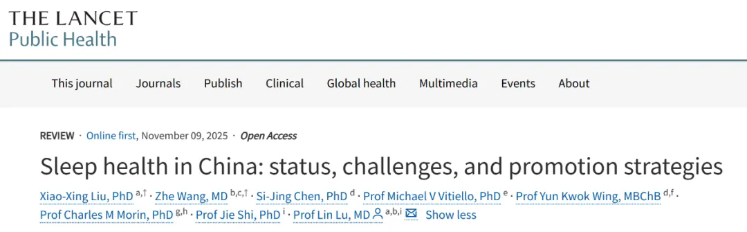 陆林院士团队在The Lancet Public Health发文:中国睡眠健康的现状、挑战和应对策略