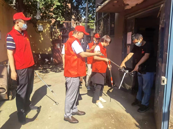 在裕北社区,志愿服务队联合社区工作人员组织开展环境卫生大扫除,集中清扫小区庭院、楼道、花坛等卫生死角,铲除楼道小广告,清理堆放垃圾杂物。大家还实地参观了社区党建工作阵地,学习基层党建特色做法,与社区工作人员就共同做好全国文明典范城市创建工作进行沟通交流,对接老旧小区综合整治、环境提升等事项。