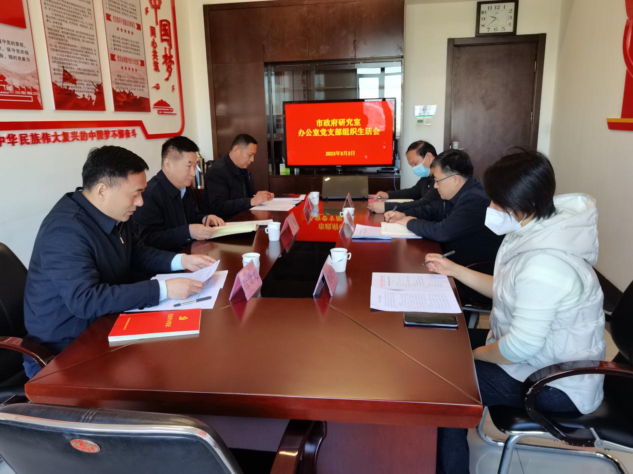 3月2日上午,市政府研究室办公室党支部召开组织生活会,市政府副秘书长,研究室党组书记、主任石玮以普通党员身份参加活动。