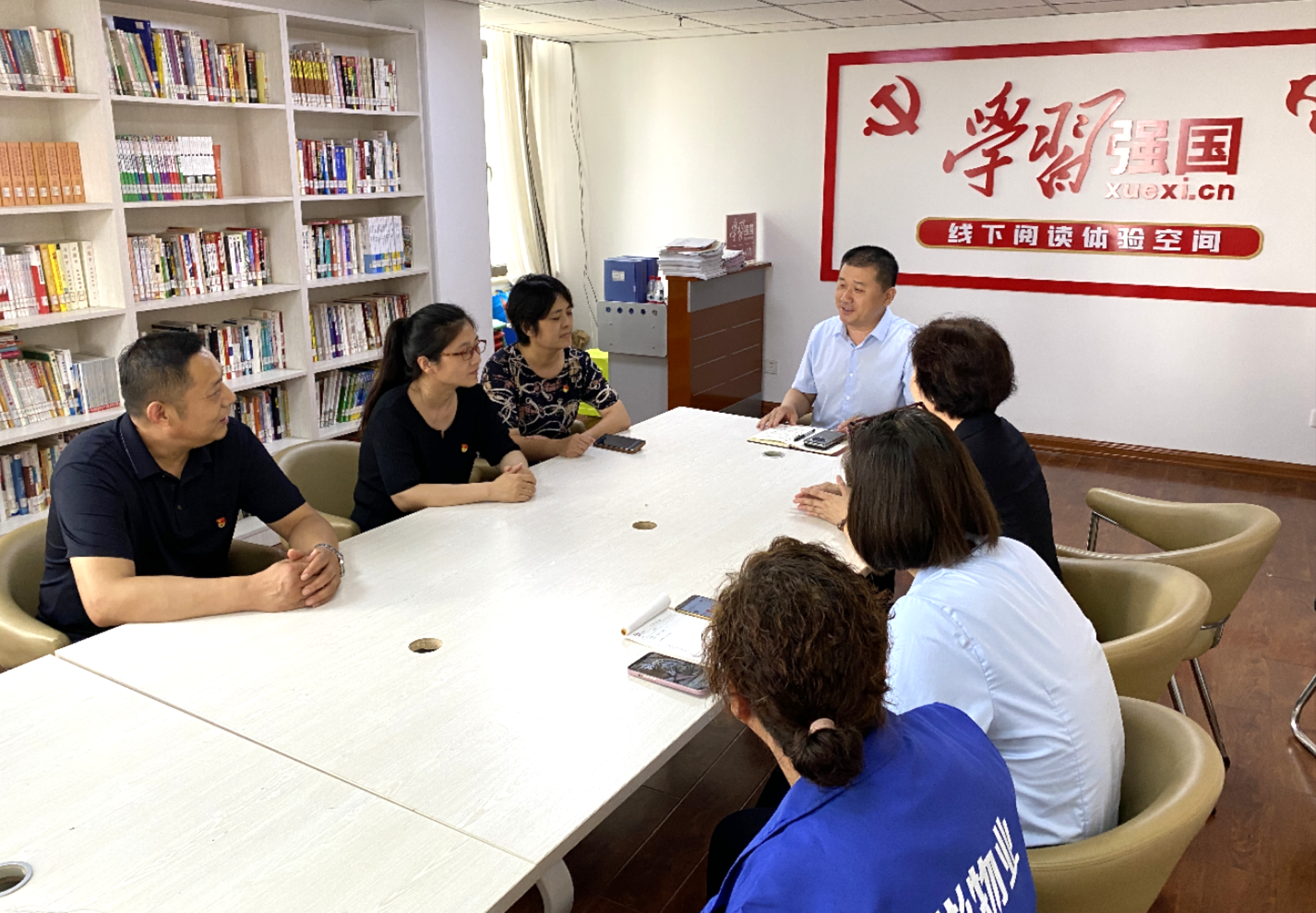 为推进学习贯彻习近平新时代中国特色社会主义思想主题教育走深走实,不断提升“双报到”工作质效,7月31日下午,市政府研究室机关党总支一行赴槐荫区中大槐树街道裕园社区开展“双报到”活动,就社区“银龄食堂”规划和“信托制”物业运行情况进行座谈交流。