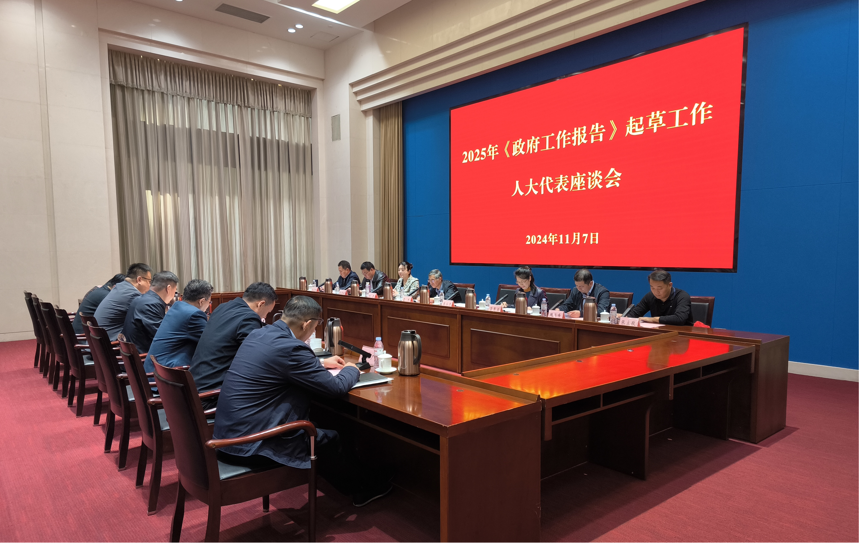 11月7日,市政府研究室在龙奥大厦召开座谈会,围绕2025年《政府工作报告》起草工作,征求部分市人大代表、政协委员的意见建议。市政府副秘书长,市政府研究室党组书记、主任石玮主持会议。