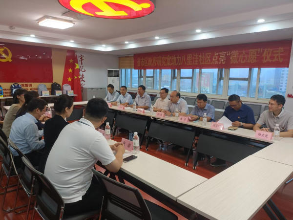 为持续深化“我为群众办实事”实践活动,做优做实党员联系社区“双报到”工作,8月30日上午,市政府研究室联合省政府研究室、市中区政府研究室,到市中区六里山街道八里洼社区开展“党员进社区 圆梦微心愿”共建活动,现场举行点亮“微心愿”仪式,并就下一步助力市中发展进行座谈交流。省政府研究室一级巡视员李树典,市政府研究室党组副书记、副主任潘大海及党组成员魏勇,市中区副区长张源等参加活动。