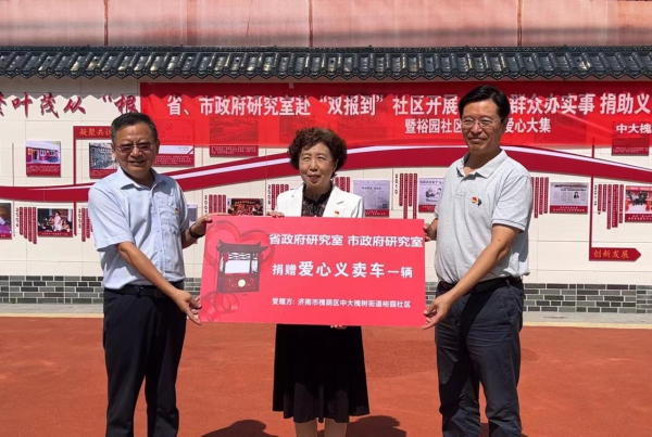 为深化开展“上一线、察实情、练本领、促发展”群众工作教育实践活动,做深做实“双报到”工作,7月18日上午,市政府研究室联合省政府研究室、槐荫区政府办公室共同赴槐荫区中大槐树街道裕园社区开展“我为群众办实事 捐助义卖心连心”主题活动,现场举办了“闲转绿色共享项目”启动仪式。省政府研究室党组成员、副主任赵昌军,市政府研究室党组成员、副主任刘庆需,槐荫区政府办公室党组成员、区政府发展研究中心主任沈波等参加活动。