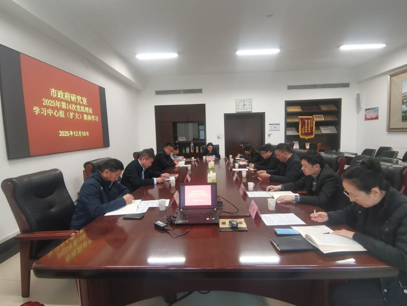 12月10日,市政府研究室进行第14次党组理论学习中心组集体学习,深入学习《中国共产党思想政治工作条例》,提出贯彻落实举措。市政府副秘书长,研究室党组书记、主任石玮主持会议并讲话。党组成员杨同鲁、魏勇作交流发言。
