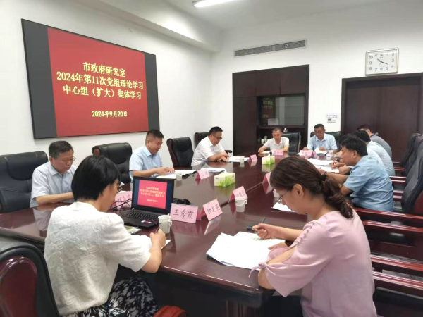 9月20日,市政府研究室党组理论学习中心组举行集体学习,专题学习习近平总书记关于调查研究的重要论述,结合研究室工作实际,研究贯彻落实具体措施。市政府副秘书长,研究室党组书记、主任石玮主持会议并讲话。市政府研究室党组成员、市管干部、各处室负责人参加会议。
