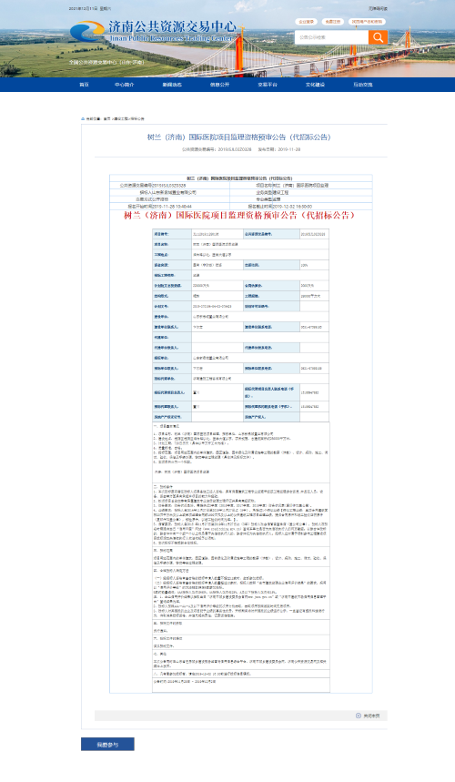 树兰(济南)国际医院项目监理资格预审公告(代招标公告)