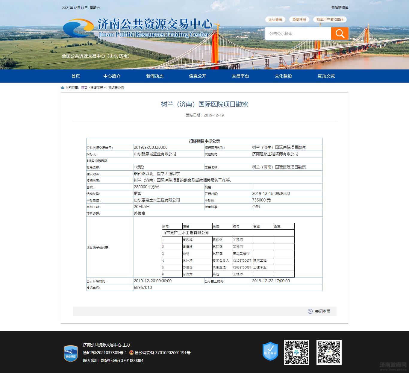 树兰(济南)国际医院项目勘察中标公示