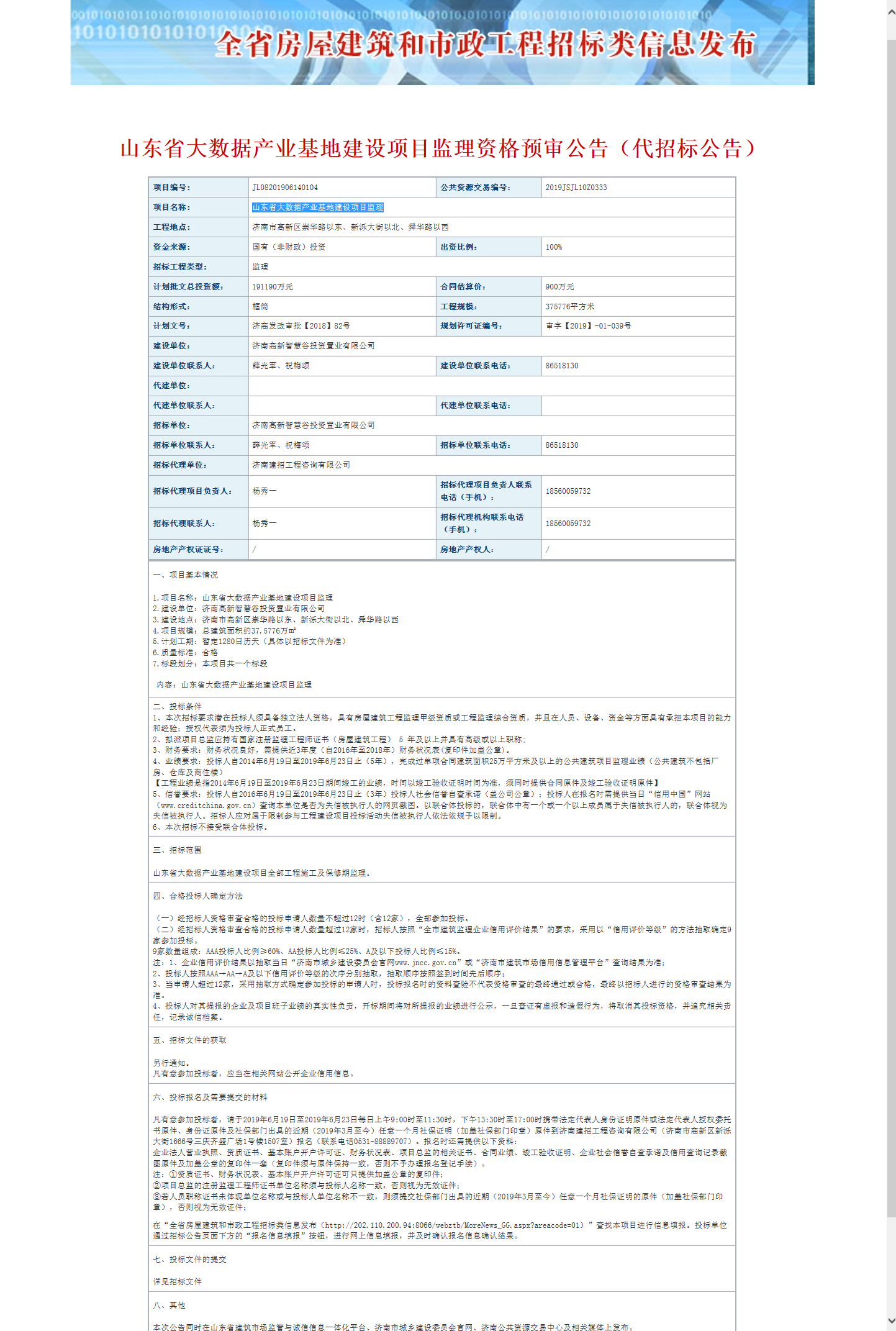 山东省大数据产业基地建设项目监理招标公告 发布日期:2021-12-10 17:21 信息来源:济南市政府门户网站 浏览次数:次 字体:【 默认 大 超大 】 山东省大数据产业基地建设项目监理招标公告 【打印本页】 【关闭窗口】