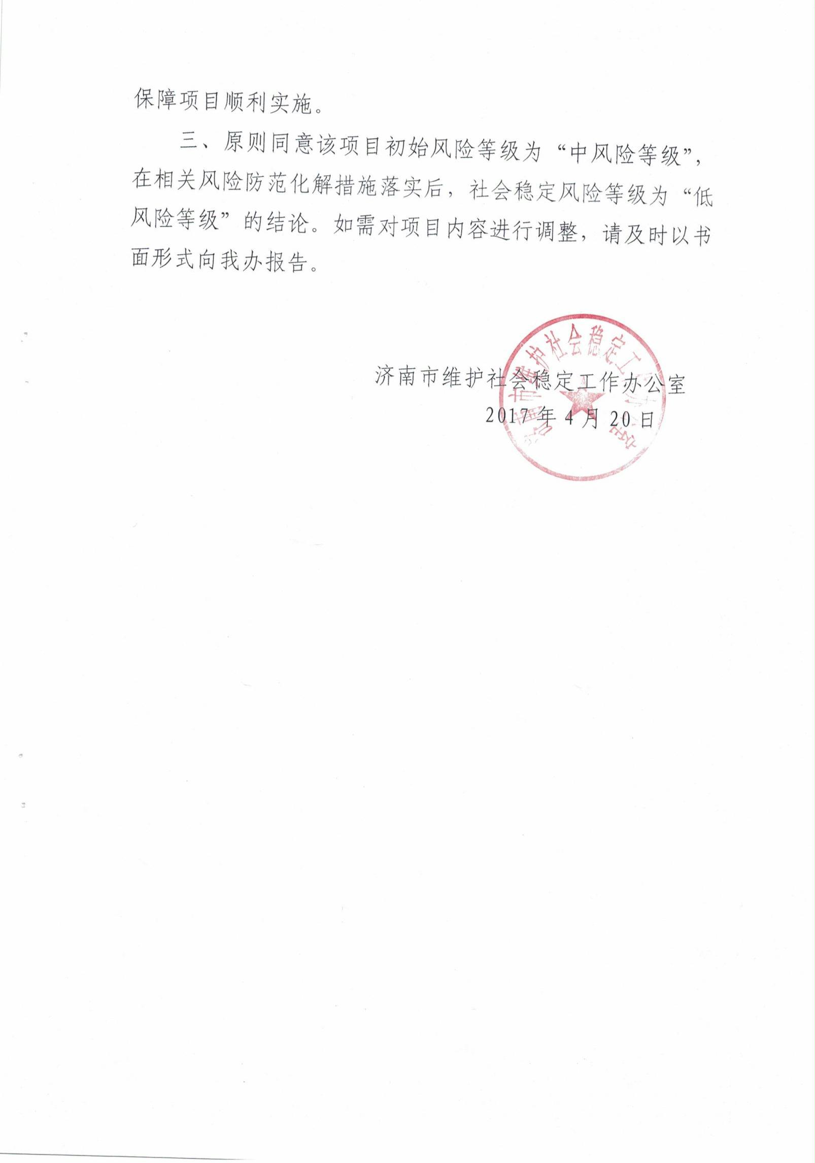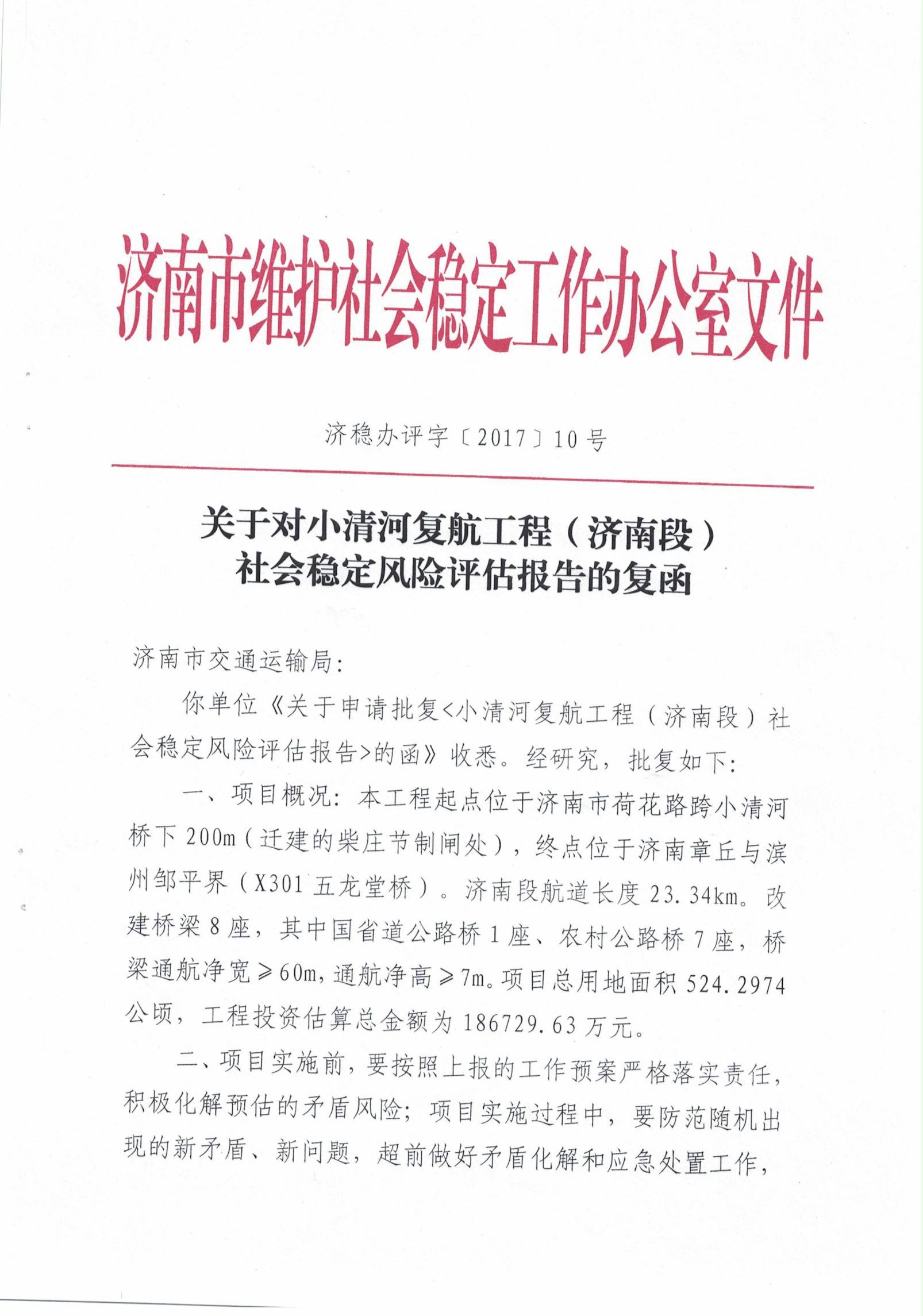 济南市维稳办《关于对小清河复航工程(济南段)社会稳定风险评估报告的函》 发布日期:2021-12-13 10:36 信息来源:济南市政府门户网站 浏览次数:次 字体:【 默认 大 超大 】 【打印本页】 【关闭窗口】