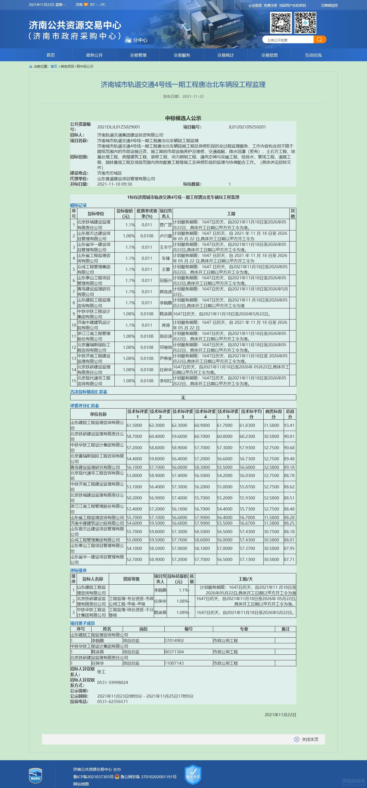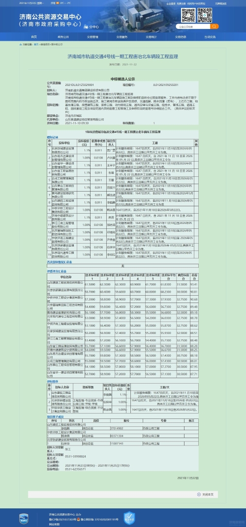 济南轨道交通4号线一期工程唐冶北车辆段监理预中标公示