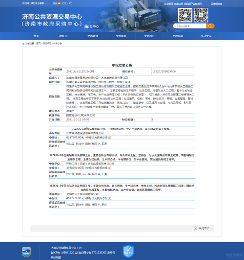 新建济南至莱芜高速铁路工程站房及相关工程施工监理中标公告 发布日期:2021-12-13 11:55 信息来源:济南市政府门户网站 浏览次数:次 字体:【 默认 大 超大 】 【打印本页】 【关闭窗口】